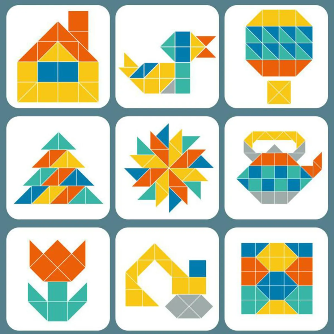 Incluye piezas geométricas magnéticas y un tablero tipo libro, donde podrán recrear figuras siguiendo el manual incluido o dejando volar su imaginación. ✨