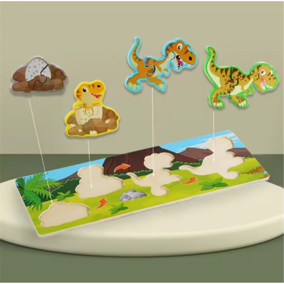 ¡Aprender nunca fue tan divertido! Este encantador 🧩 rompecabezas evolutivo acompaña a los niños en el descubrimiento del ciclo de vida de la naturaleza 🐢🦖. A través de sus piezas de madera, los pequeños pueden observar cómo nace, crece y se transforma una tortuga o un dinosaurio, mientras desarrollan habilidades cognitivas y motrices.