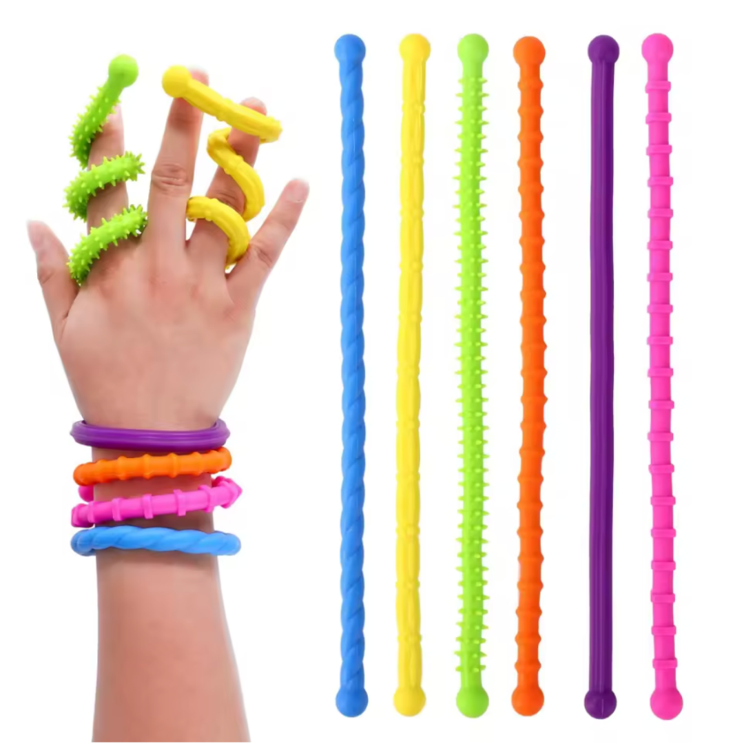 Con sus diferentes formas y relieves, estos palitos permiten estirar, doblar y girar, fortaleciendo la motricidad fina, la coordinación mano-ojo y fomentando la concentración. Además, son un recurso perfecto para actividades sensoriales, juegos de relajación y momentos de calma. 🎉👶