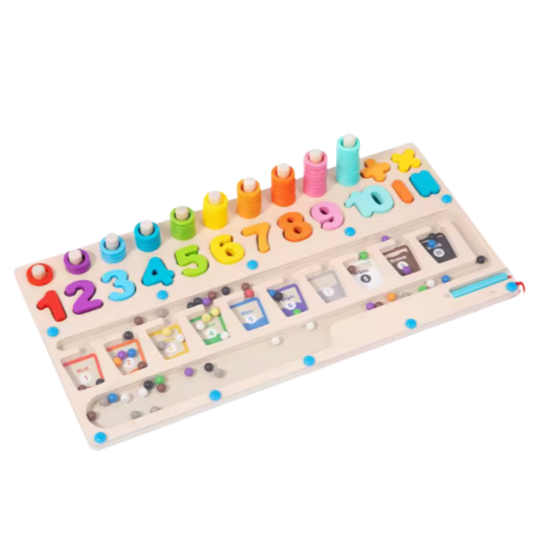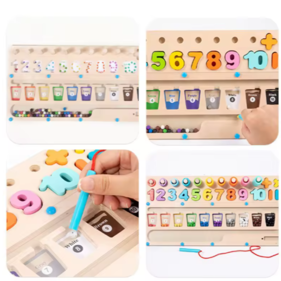 Este tablero no solo enseña a reconocer los números, sino que también promueve la coordinación ojo-mano, la motricidad fina y la concentración, pilares fundamentales del método Montessori. A través del juego libre, los niños fortalecen su autonomía y descubren el placer de aprender por sí mismos. 💡🎯