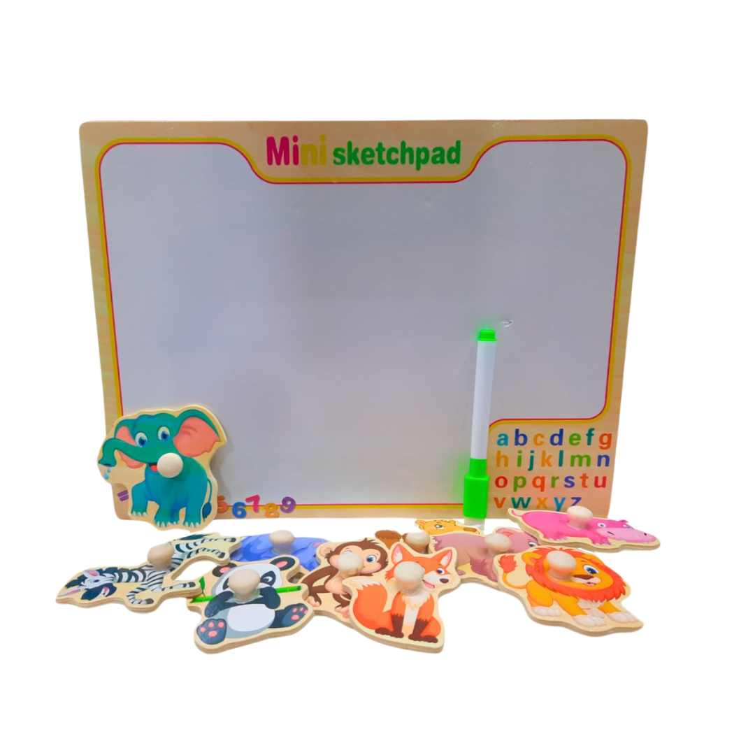 Rompecabezas de Botón: En el reverso, se presenta un emocionante rompecabezas con botones y figuras de animales salvajes como leones, elefantes, jirafas y más. Los botones grandes son perfectos para las manos pequeñas, ayudando a tus hijos a desarrollar habilidades de resolución de problemas y coordinación mano-ojo mientras se divierten encajando cada pieza en su lugar.